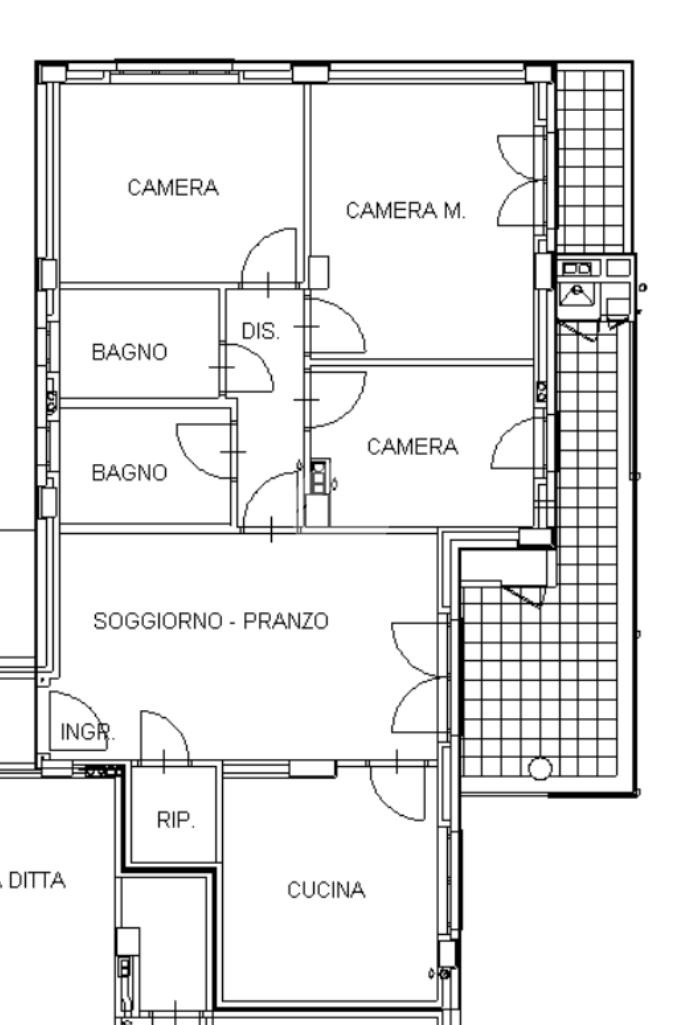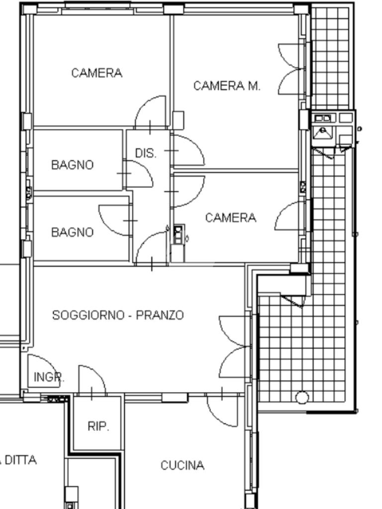 La porta blindata si apre su un'ampia sala che può ospitare i mobili da soggiorno, un comodo divano, il tavolo e le sedie; luminosa, ha una porta finestra che ci conduce al terrazzo di circa 15 mq dotato di tende estate/inverno.
