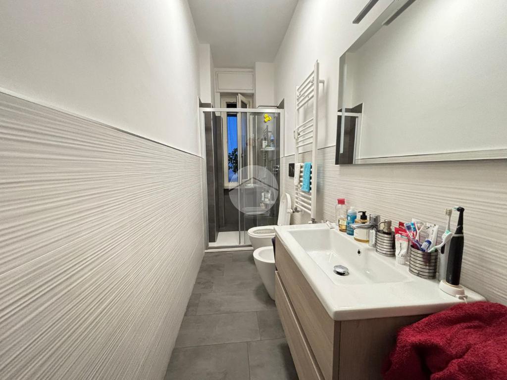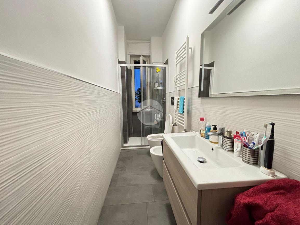 Il bagno, finestrato e rifinito con gusto, è dotato di comodo box doccia. Completano la proprietà due balconi che garantiscono doppia esposizione e ottima luminosità durante tutto l’arco della giornata, oltre a una pratica cantina al piano interrato.