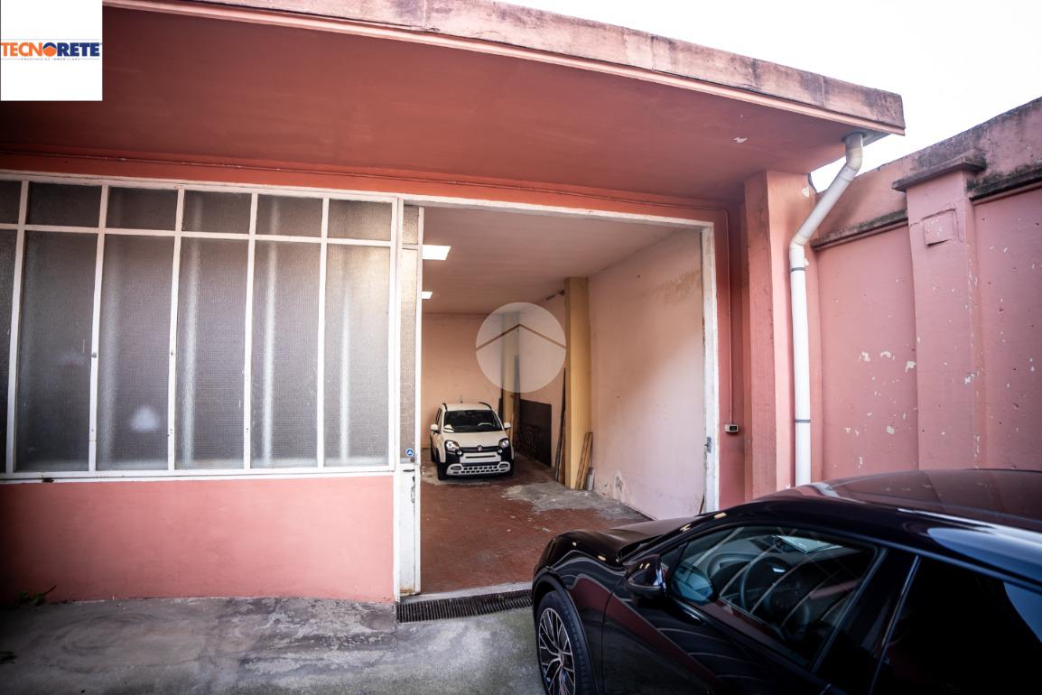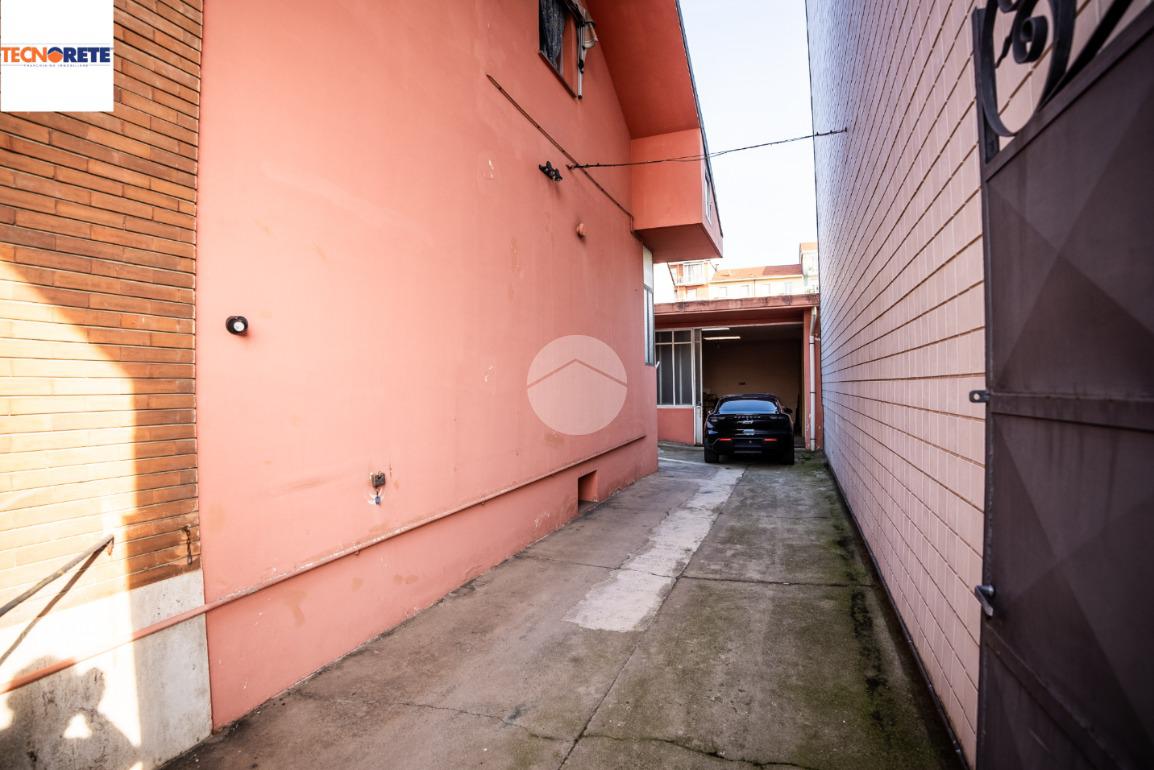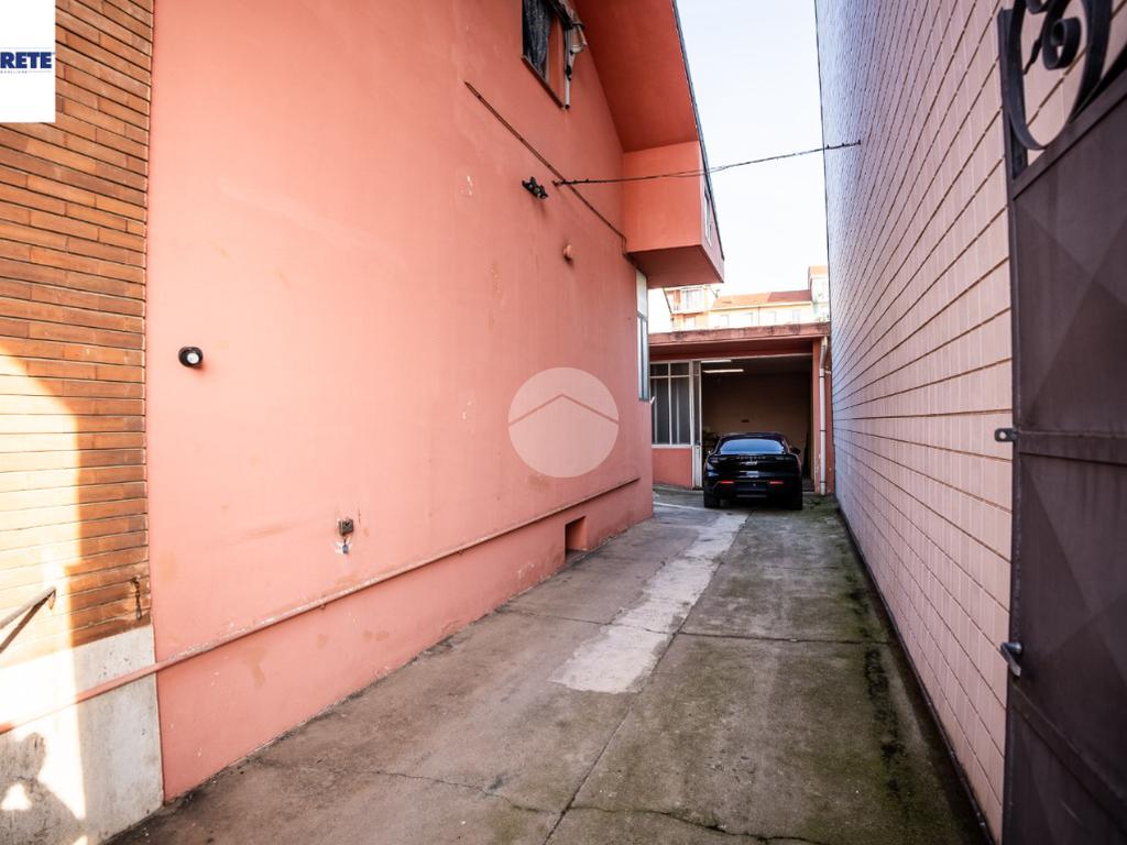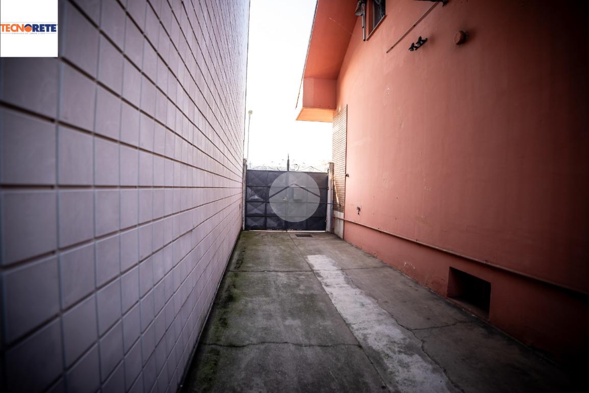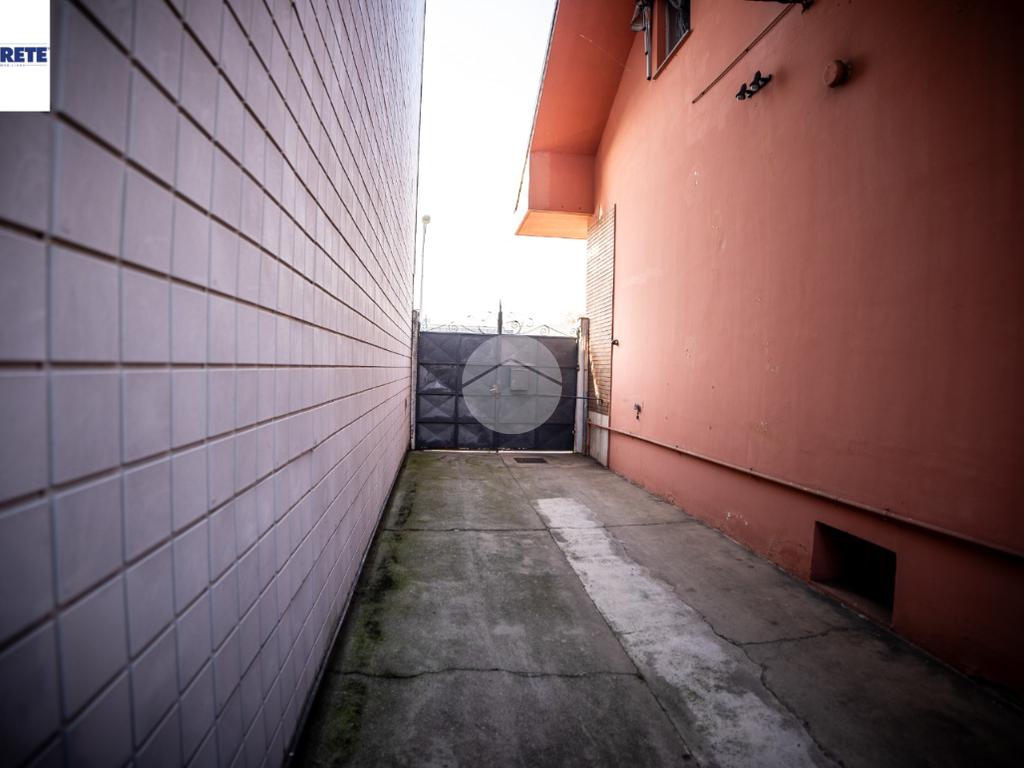 L’accesso avviene tramite passo carraio con cancello elettrico, che conduce al cortile privato e agli ingressi del magazzino e dell’abitazione.